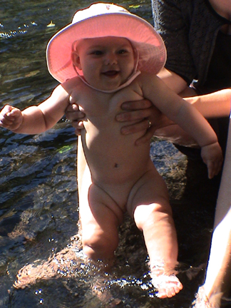 Josey's first skinny dipping adventure on the McKenzie River